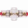 Держатель предохранителя AGU "колба" закрепляет предохранитель на проводе и защищает его от внешних физических воздействий. Держатель можно применять также для защиты электрической цепи и ее элементов от скачков напряжения, перегрева и возгорания. Устанавливается в разрыв кабеля и имеет винтовые пластмассовые наконечники. Материал корпуса - термостойкий и прочный пластик прозрачного цвета, который имеет форму колбы. В большинстве случаев данный держатель незаменим при подключении самбуфера или усилителей на колонки в автомобиль.