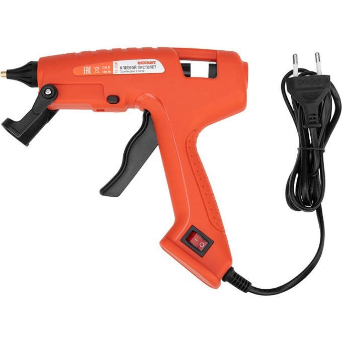 Пистолет клеевой REXANT (100 Вт, Ø11 мм, «ЭКСПЕРТ») предназначен для прочной фиксации поверхностей с помощью расплавленной клеевой массы.