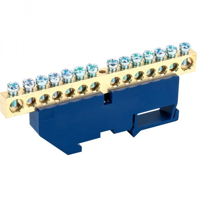 Шина REXANT с синим изолятором на DIN-рейку 8x12 мм 14 групп 11-2350