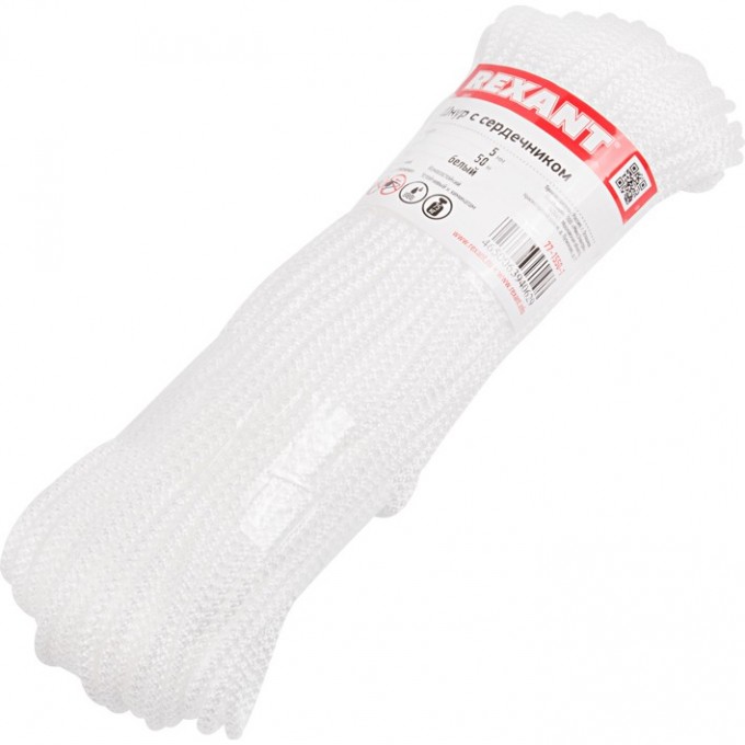 Шнур с сердечником REXANT 5 мм 50 м белый 77-1550-1