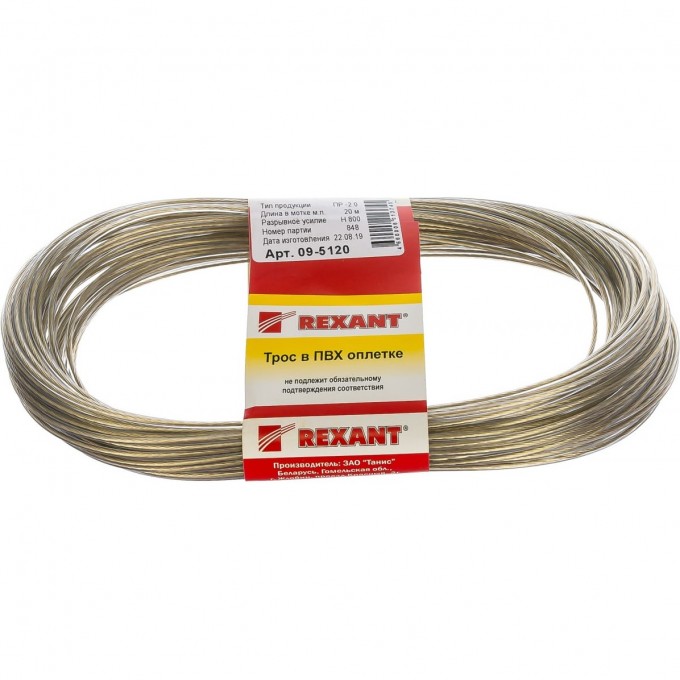 Трос стальной REXANT в ПВХ оплетке d=2,0 мм, прозрачный (моток 20 м) 09-5120