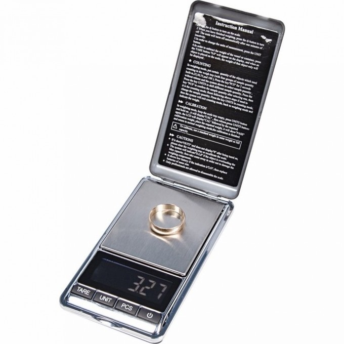 Профессиональные электронные мини-весы REXANT карманного формата с рабочим диапазоном от 0,01 до 100 грамм -это высокоточный прибор для взвешивания мелких предметов. Применяется в различных лабораторных работах, при моделировании, коллорировании и при других различных бытовых задачах. Весы имеют конструкцию  напоминающую блокнот, откидная крышка надежно предохраняет механизм от механических повреждений. Платформа для взвешивания изготовлена из нержавеющей стали- данный материал удобен для очистки и устойчив к большинству химических веществ.