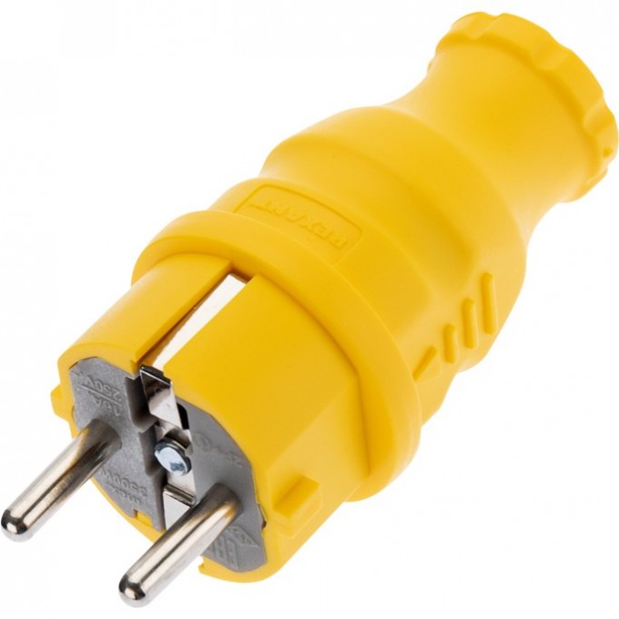 • Вилка прямая REXANT 16А c/з влагозащищенная каучук желтая 111-014